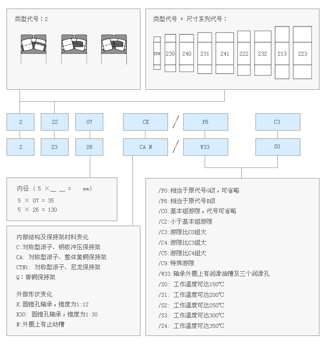 調(diào)心滾子軸承的不同設(shè)計 類型代號