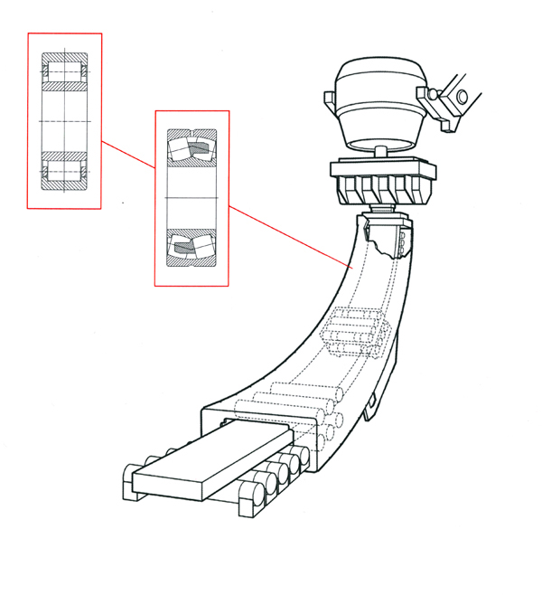 在冶金行業(yè),TWB產(chǎn)品主要應(yīng)用于連鑄機(jī)、熱軋前后及加熱爐的運(yùn)送輥道等。針對(duì)連鑄機(jī)在高溫、重載、重污染的工況條件下連續(xù)工作的應(yīng)用特點(diǎn),TWB開發(fā)了專用于連鑄機(jī)的系列產(chǎn)品,主要應(yīng)用于結(jié)晶器振動(dòng)裝置、扇形段及冷卻段板坯輸送輥道,并已在國內(nèi)外多家鋼廠的新生產(chǎn)線上成功運(yùn)行。TWB也是鋼鐵生產(chǎn)企業(yè)的日常維修軸承的重要供應(yīng)商,產(chǎn)品廣泛應(yīng)用于齒輪箱、風(fēng)機(jī)及輸送輥道等。